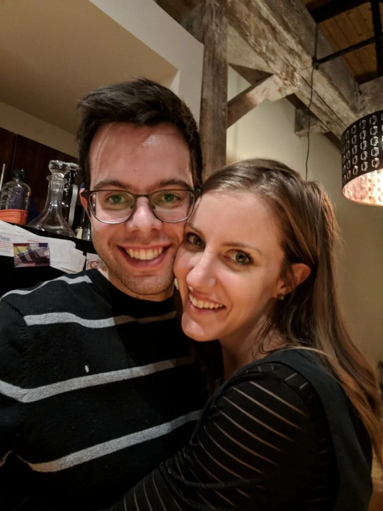 It is very important to us that we keep growing together as a couple and as individuals. We love music and seeing live shows. (You didn’t ask for it but, hey! here’s a playlist of some of our favorite shared music). We love to travel together. Though we no longer work at the same company, we both still work at tech startups and share our experiences often. We cook a lot and are always experimenting with new and tasty pescatarian dishes. Morgan spends her free time taking art classes and watching documentaries, while Adam plays basketball and chess. Of course, all of you know that we love to laugh and spend time with our loved ones most of all.